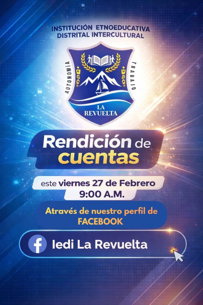 Para la Institución Etnoeducativa La Revuelta la transparencia y el compromiso con la excelencia son pilares fundamentales. Por ello, extendemos una cordial invitación a estudiantes, docentes, padres de familia y acudientes a nuestra jornada de Rendición de Cuentas.